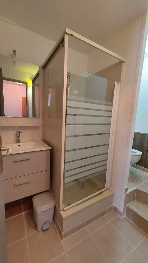 Il est composé d'une entrée, une salle d'eau avec wc, une une pièce de vie lumineuse avec cuisine intégrée donnant accès au jardin et une chambre séparée.