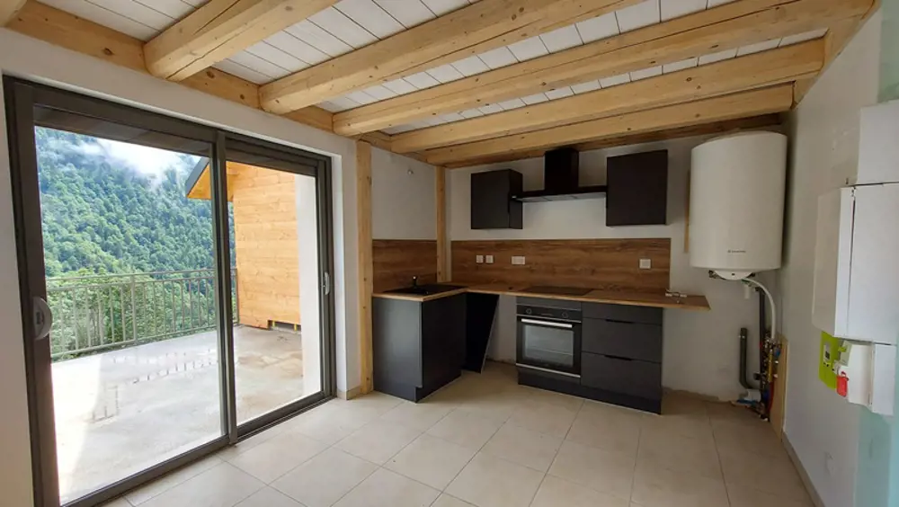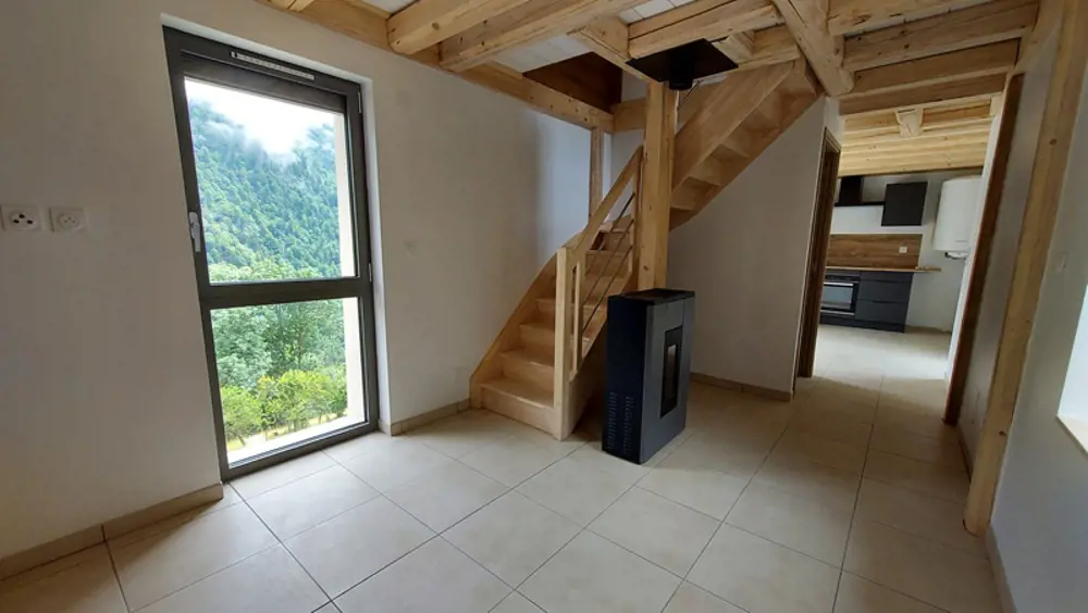 ALLEMOND - Située dans le hameau du Rivier d'Allemond, cette maison mitoyenne d'environ 50 m², répartie sur deux niveaux, allie le cachet de l'ancien et le confort des prestations modernes.