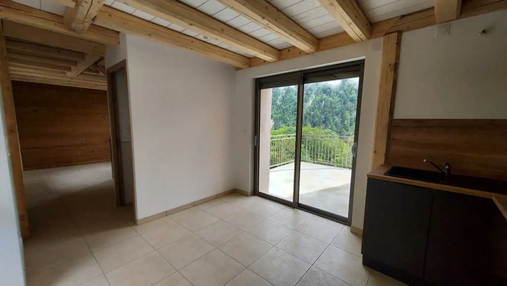 Entièrement rénovée avec des materiaux de qualité, elle vous seduira par son ambiance chaleureuse et son agencement fonctionnel. Au rdc vous trouverez une cuisine entièrement équipée donnant sur une belle terrrasse de 25 m² avec vue magnifique sur la montagne, un salon lumineux et un wc. A l'étage, deux chambres et une salle d'eau, le tout sur une parcelle de 337 m².