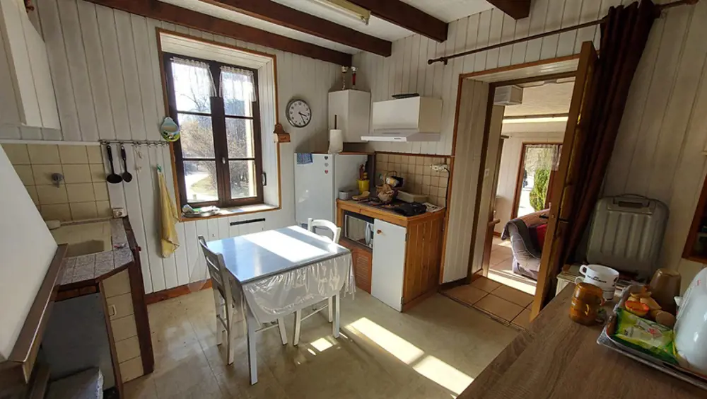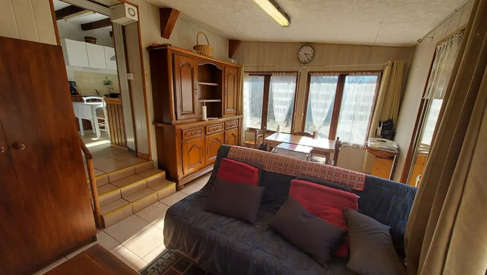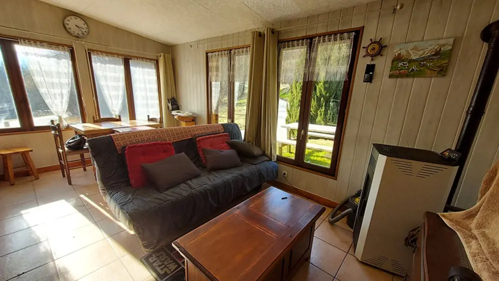 EXCLUSIVITE - VAUJANY : Située dans un endroit au calme, charmante petite maison individuelle d'une surface d'environ de 52 m² dont une véranda de 17 m², dans un cadre bucolique sur un terrain de 517 m² et deux autres parcelles non attenantes. Le bien est composé au rdc d’un hall d’entrée, une pièce de vie, une cuisine, au niveau -1, une grande salle d’eau et un wc, au niveau +1, une chambre. La maison dispose également d’un petit hangar démontable attenant à la maison. A 1,5 km du téléphérique qui vous emmène sur le grand domaine de l’Alpe d’Huez cette maison sera ravir les amoureux de la montagne, été comme hiver ! Des travaux de rénovations sont à prévoir ainsi un système d'assainissement individuel.