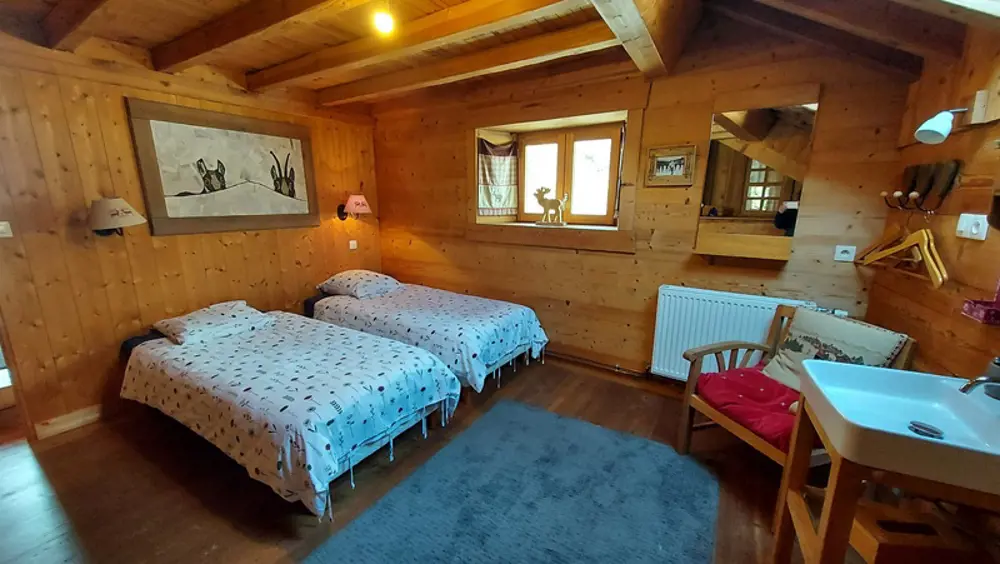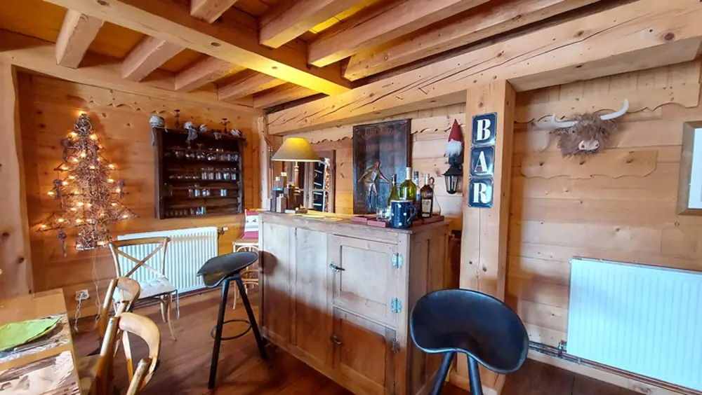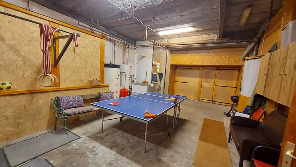 The gîte, located on the ground floor, is a separate apartment comprising a large living room, two sleeping areas, two showers and two WCs, a large garage converted into a games room and gym, and a heated ski room. The property also has a 150 m² garden.