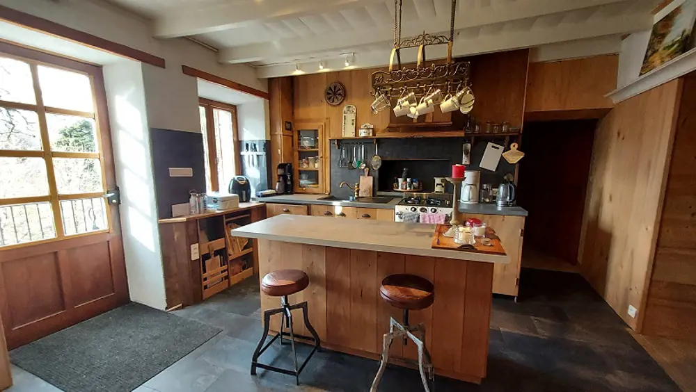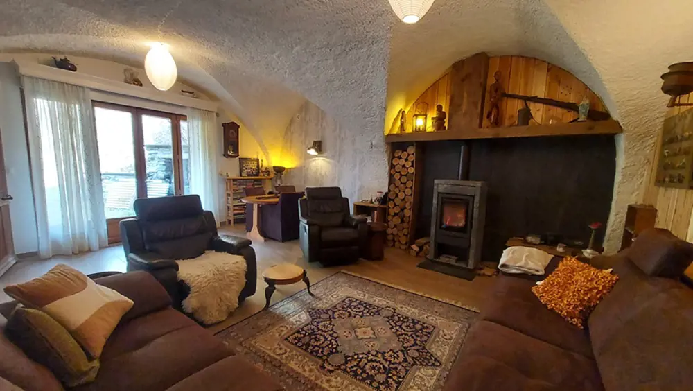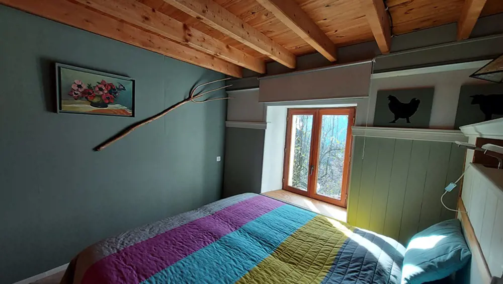 Le bien est composé de : au rdc, une cuisine, un grand salon vouté avec pôele à bois, une chambre, une salle d'eau, un wc. Au 1er étage, une gande chambre pouvant être transormé en deux parties, une chambre, une salle d'eau récente avec Wc. Bel espace de combles à aménager avec grange attenante. La maison dispose également d'un jardin avec four à pain et d'une terrasse avec une vue imprenable sur la vallée.