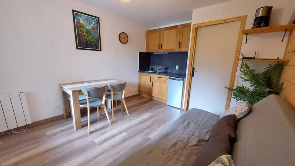 OZ STATION - Idéalement situé au centre de la station, et au pied des pistes, joli studio, trés bien agencé, d'environ 21 m², composé d'une entrée avec coin montagne, une cuisine ouverte sur une pièce de vie donnant sur un balcon, une salle d'eau, un wc. Le studio est vendu meublé avec casier à ski. parfait état, aucun travaux à prévoir.