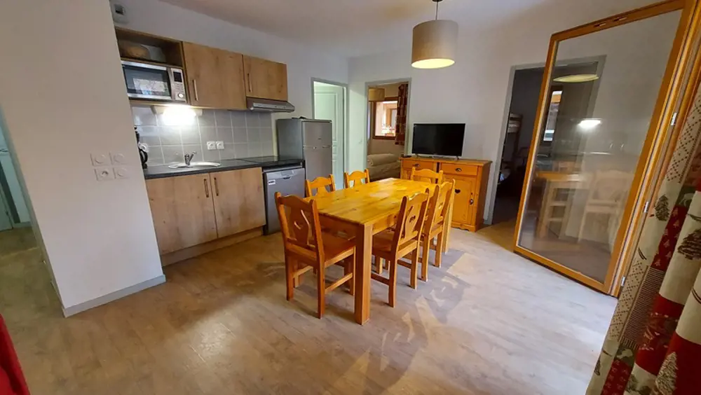 VAUJANY - Appartement sous bail jusqu'à fin avril 2027, situé au 4ème étage dans une résidence avec ascenseur au centre de Vaujany, accès aux remontées mécaniques par des escalators. Le bien se compose d'un hall d'entrée, d'une cuisine ouverte sur un séjour donnant sur une terrasse, de deux chambres, d'une grande salle de douche avec accès PMA et d'un WC. L'appartement est vendu meublé, avec casier à skis.