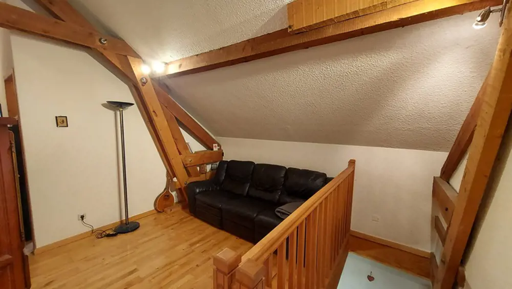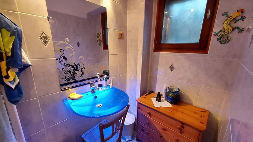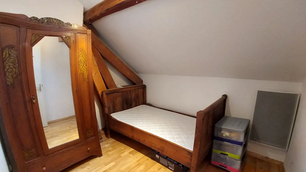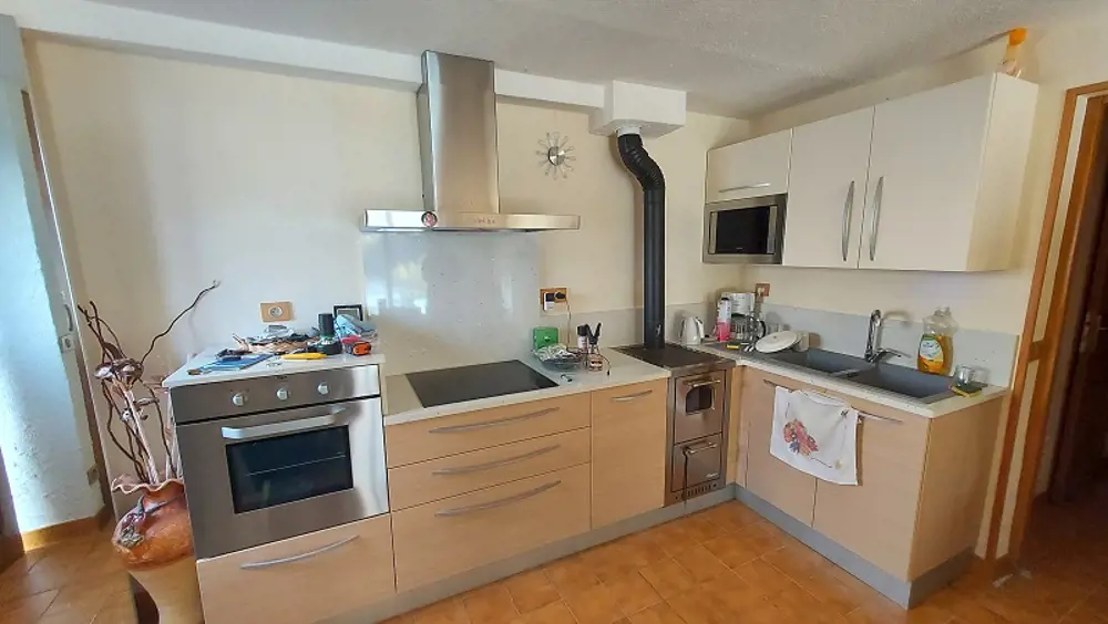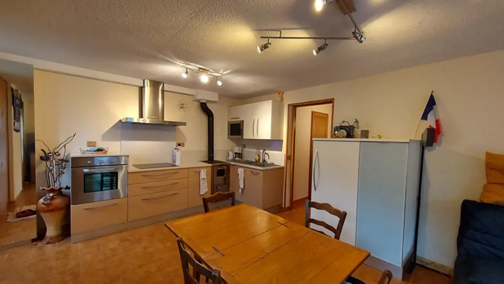 Chauffage : convecteurs electriques. Cheminée dans le grand appartement et cuisinière bois dans le petit appartement